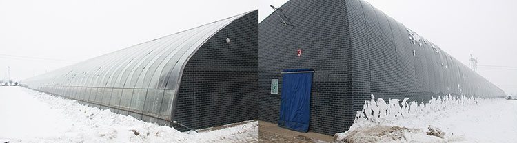 冬季晴天外界-30℃下,室內(nèi)溫度在8℃以上,冬季正常天氣條件下可不加溫進行果菜類作物生產(chǎn)。
