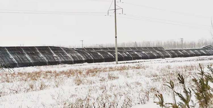 3、保溫性:雙膜單被,隔熱保溫好。晴天,外界-30℃下,棚內(nèi)溫度可以達到8℃以上。冬季不加溫可以進行果菜類生產(chǎn)。
