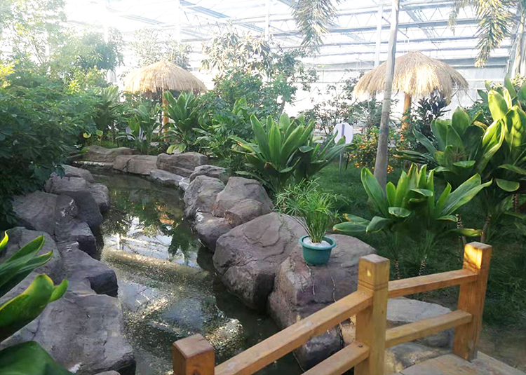 該智能溫室占地約6060平方米,種植的分別有盆栽花卉區(qū)、盆栽果樹(shù)區(qū)、沙生植物區(qū)、熱帶風(fēng)情區(qū)、家庭園藝區(qū)、無(wú)土栽培區(qū)、育苗區(qū)、采栽體驗(yàn)區(qū)等功能區(qū)。溫棚內(nèi)移動(dòng)苗床一次育苗30萬(wàn)株,可供給巴彥霍德406座溫棚,一定程度上帶動(dòng)了農(nóng)民增收。不論是熱帶植物、水果還是沙漠植物,冬天在這里你可以一覽無(wú)余,到處綠色生機(jī)勃勃。