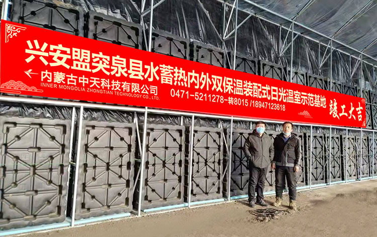 水蓄熱內(nèi)外雙保溫裝配式日光溫室是由內(nèi)蒙古農(nóng)業(yè)大學(xué)與內(nèi)蒙古中天科技有限公司聯(lián)合研發(fā)完成,并已在東北、西北、華北等地區(qū)進(jìn)行了大面積的示范推廣。該溫室集成了10多項(xiàng)國家專利技術(shù),實(shí)現(xiàn)了北方寒冷地區(qū)冬季不加熱正常生產(chǎn)果菜類蔬菜,對于推動設(shè)施蔬菜產(chǎn)業(yè)發(fā)展及帶動當(dāng)?shù)剞r(nóng)民增收致富有著非常重要的意義,該溫室具備以下特點(diǎn):